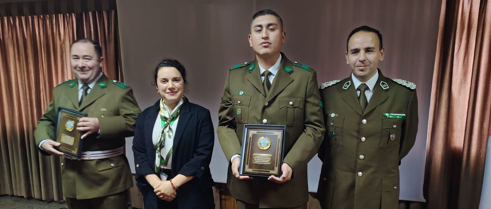 En la ocasión, la alcaldesa (s) hizo entrega de reconocimientos municipales al sargento 2° Lorenzo Efraín Aguilera Maldonado y al cabo 2° Cristian Andrés Hormazábal Hernández, en mérito a su destacado desempeño en el cumplimiento de sus funciones policiales y su compromiso con la comunidad quellonina.