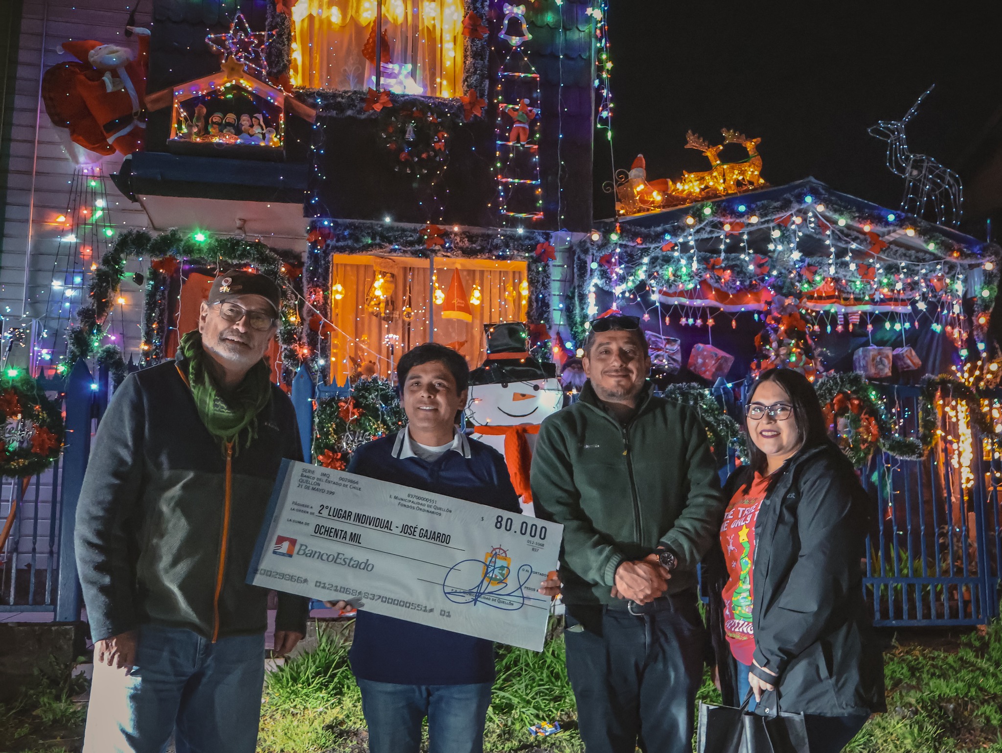 Ayer por la tarde, el alcalde de la comuna de Quellón, Claudio Barudy Labrín, junto al director de Desarrollo Comunitario, Jorge Bravo Morales y Veronica Ruiz, representante de la Dirección de Administración y Finanzas, realizaron la entrega de premios a los ganadores del concurso “𝐃𝐞𝐜𝐨𝐫𝐞𝐦𝐨𝐬 𝐐𝐮𝐞𝐥𝐥𝐨́𝐧 𝐞𝐧 𝐍𝐚𝐯𝐢𝐝𝐚𝐝 𝟐𝟎𝟐𝟓”, iniciativa que buscó fomentar la participación comunitaria y el espíritu navideño en la comuna.